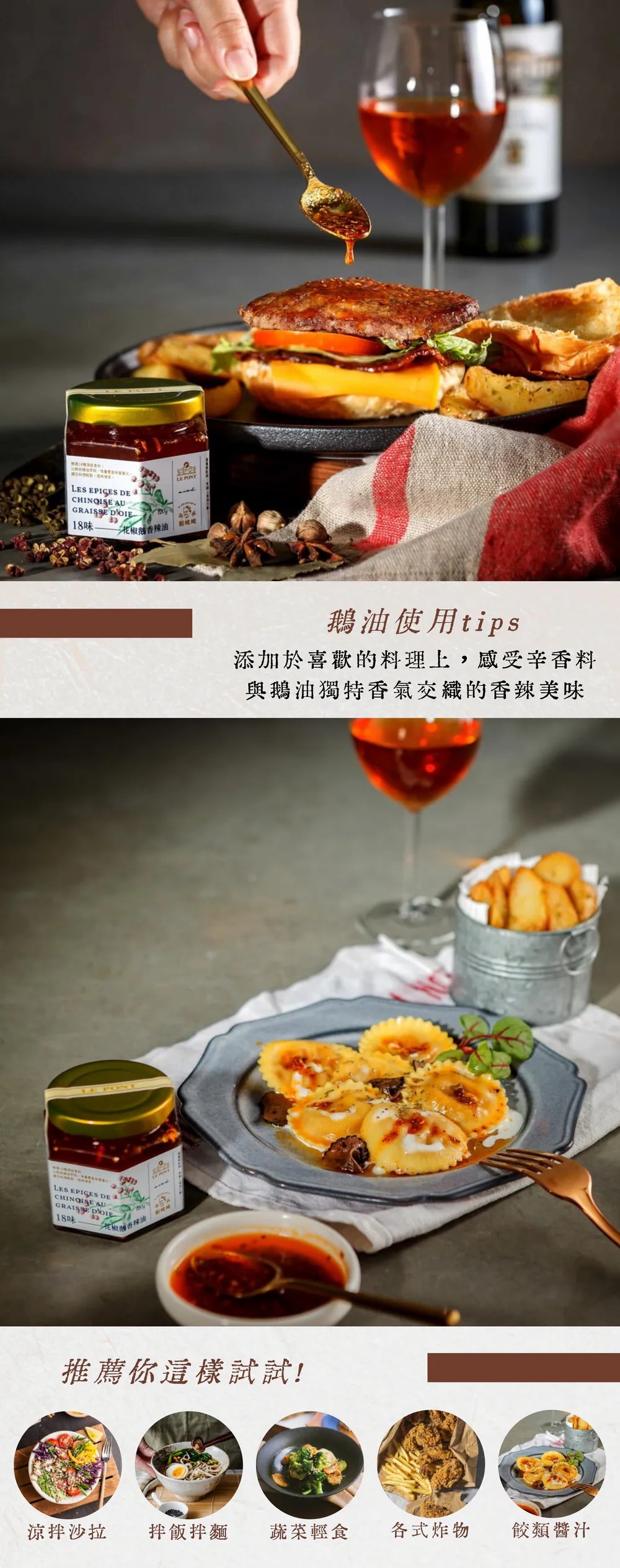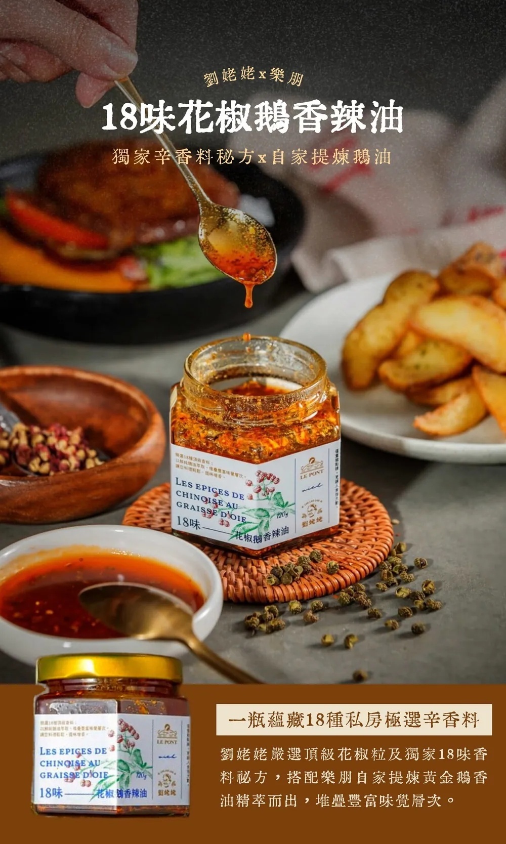 樂朋以自家提煉法式風味鵝油,融入劉姥姥花椒油採古法工序精淬而出的花椒精華。